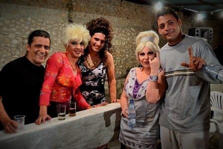 También me pidió que dos muchachos de la Red de Masculinidades pudieran transformarse en travestis ya que tenía una escena donde hay una redada policial y tenían que saltar cercas algo que no querían hacer las que tenía contratadas para el filme. Hable con Yonnier y Enmanuel los cuales muy dispuestos empezaron a buscar zapatos y utensilios que le acomodaran en su nuevo rol de trans femenino. Cuando llegaron al set ya vestidos en sus personajes empezaron a ser analizados por sus colegas que si eran “auténticas chicas de la noche y el escenario”. El primero en ganar nombre fue Yonnier que le pusieron la “campesina rumana” por sus molleros y amaneramientos masculinos. Al Enmanuel que se trabajó más su personaje le otorgaron de nombre de guerra “Rosita fresita” por la ternura de su rostro y colorido vestuario. Fueron dos noches interminables donde paso de todo lo trágico y divertido que tiene el cine: una muerte real de un chofer y un cabaret de los noventa en pleno siglo XXI.
